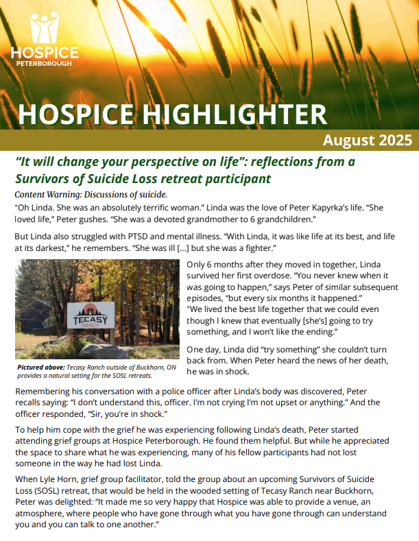 Newsletters Home » About Hospice Peterborough » Newsletters Enjoy Our Archive of Hospice Highlighter Newsletters Newsletter – August 2025 Newsletter June-July 2025 Newsletter March 2025 Newsletter January 2025 Newsletter Nov 2024 Newsletter Oct 2024 Newsletter July 2024 Newsletter May 2024 Newsletter Mar 2024 Newsletter Jan 2024 Newsletter Nov 2024 Newsletter Aug 2023 Newsletter Apr 2023 Newsletter Feb 2023 Newsletter Dec 2022 Newsletter Oct 2022 Newsletter Jul 2022 Newsletter May 2022 Newsletter Mar 2022 Newsletter Jan 2022 Newsletter Feb 2021 Newsletter Sep 2021 Newsletter Jul 2021 Newsletter May 2021 Newsletter May 2021 Newsletter Jan 2021 Newsletter Dec 2020 Newsletter Oct 2020 Newsletter Jul 2020 Newsletter Apr 2020 Newsletter Sep 2019 Newsletter May 2019 Newsletter Mar 2019 Newsletter Sep 2018 Newsletter Jun 2018 Newsletter Apr 2018 Newsletter Feb 2018 Newsletter Dec 2017 Newsletter Oct 2017 Newsletter Aug 2017 Newsletter Jul 2017 Newsletter Apr 2017 Newsletter Feb 2017 Newsletter Apr 2023