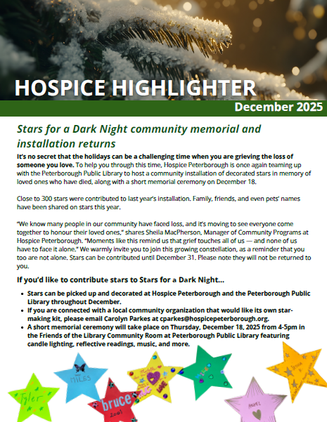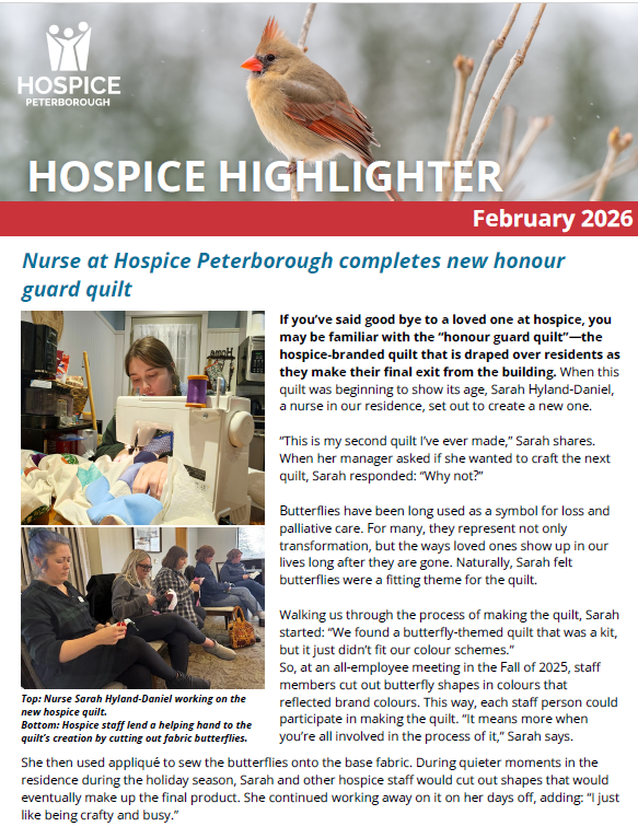 Newsletters Home » About Hospice Peterborough » Newsletters Enjoy Our Archive of Hospice Highlighter Newsletters Newsletter February 2026 Newsletter December 2025 Newsletter October 2025 Newsletter August 2025 Newsletter June-July 2025 Newsletter March 2025 Newsletter January 2025 Newsletter Nov 2024 Newsletter Oct 2024 Newsletter July 2024 Newsletter May 2024 Newsletter Mar 2024 Newsletter Jan 2024 Newsletter Nov 2024 Newsletter Aug 2023 Newsletter Apr 2023 Newsletter Feb 2023 Newsletter Dec 2022 Newsletter Oct 2022 Newsletter Jul 2022 Newsletter May 2022 Newsletter Mar 2022 Newsletter Jan 2022 Newsletter Feb 2021 Newsletter Sep 2021 Newsletter Jul 2021 Newsletter May 2021 Newsletter May 2021 Newsletter Jan 2021 Newsletter Dec 2020 Newsletter Oct 2020 Newsletter Jul 2020 Newsletter Apr 2020 Newsletter Sep 2019 Newsletter May 2019 Newsletter Mar 2019 Newsletter Sep 2018 Newsletter Jun 2018 Newsletter Apr 2018 Newsletter Feb 2018 Newsletter Dec 2017 Newsletter Oct 2017 Newsletter Aug 2017 Newsletter Jul 2017 Newsletter Apr 2017 Newsletter Feb 2017 Newsletter Apr 2023
